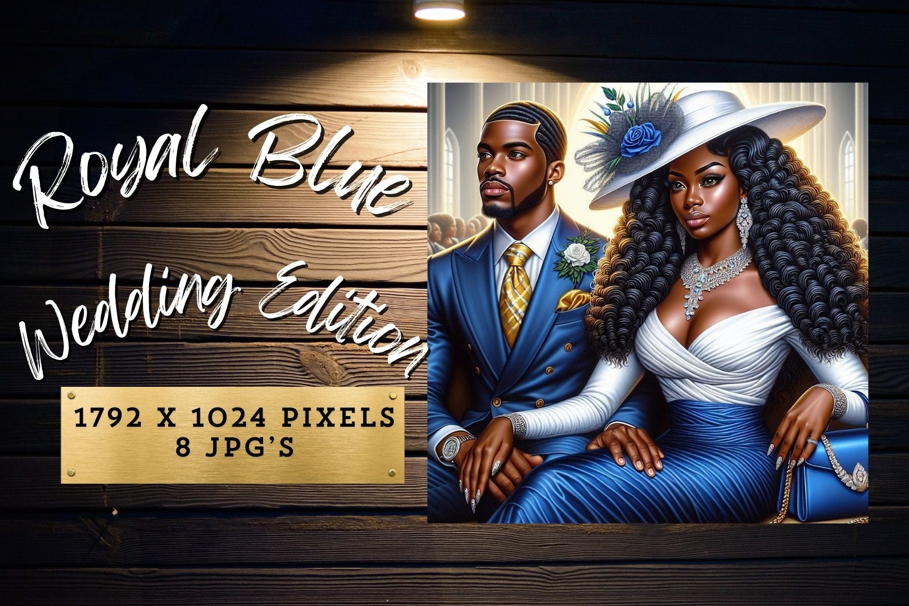 African American Couple in Church - Royal Blue Wedding Digital Illustration