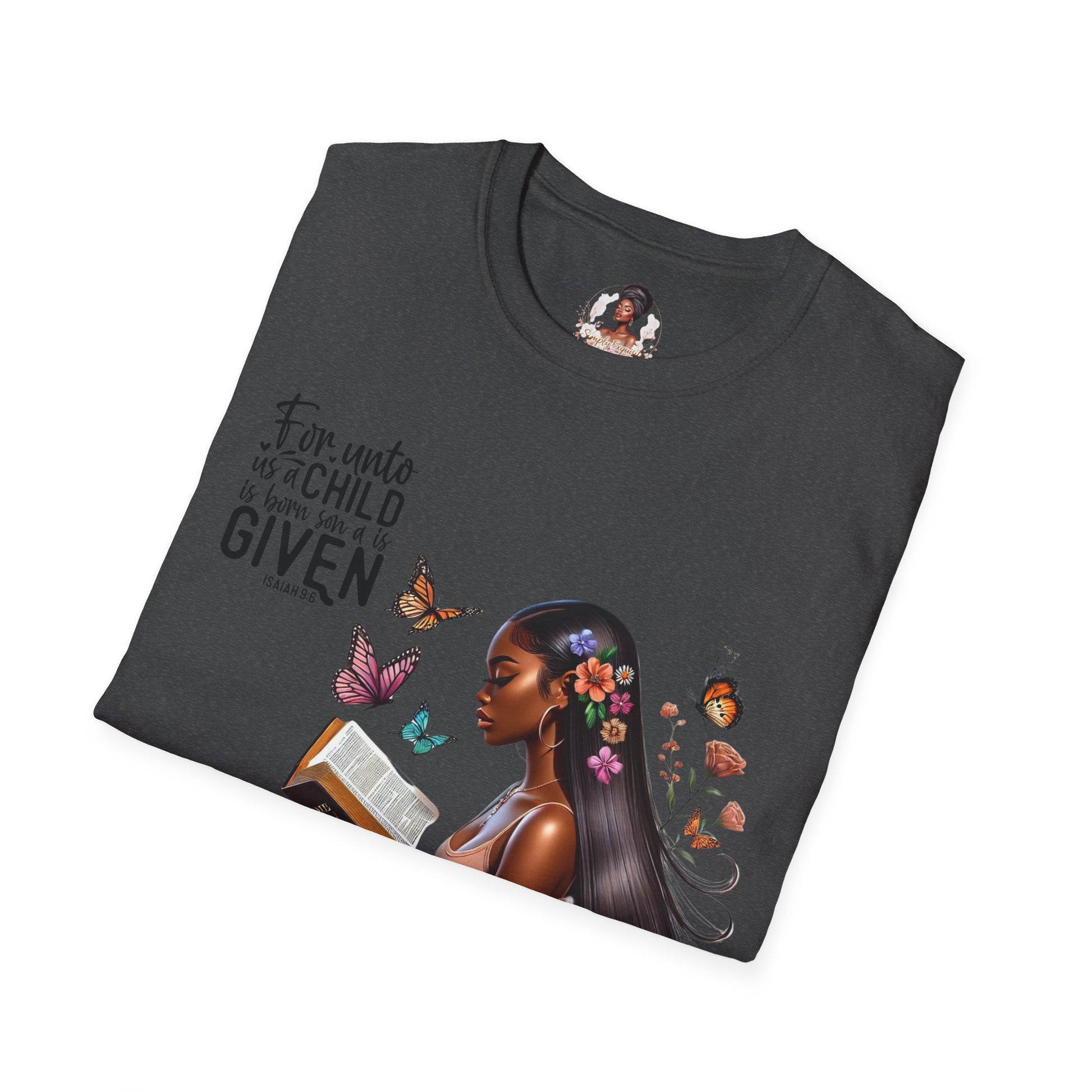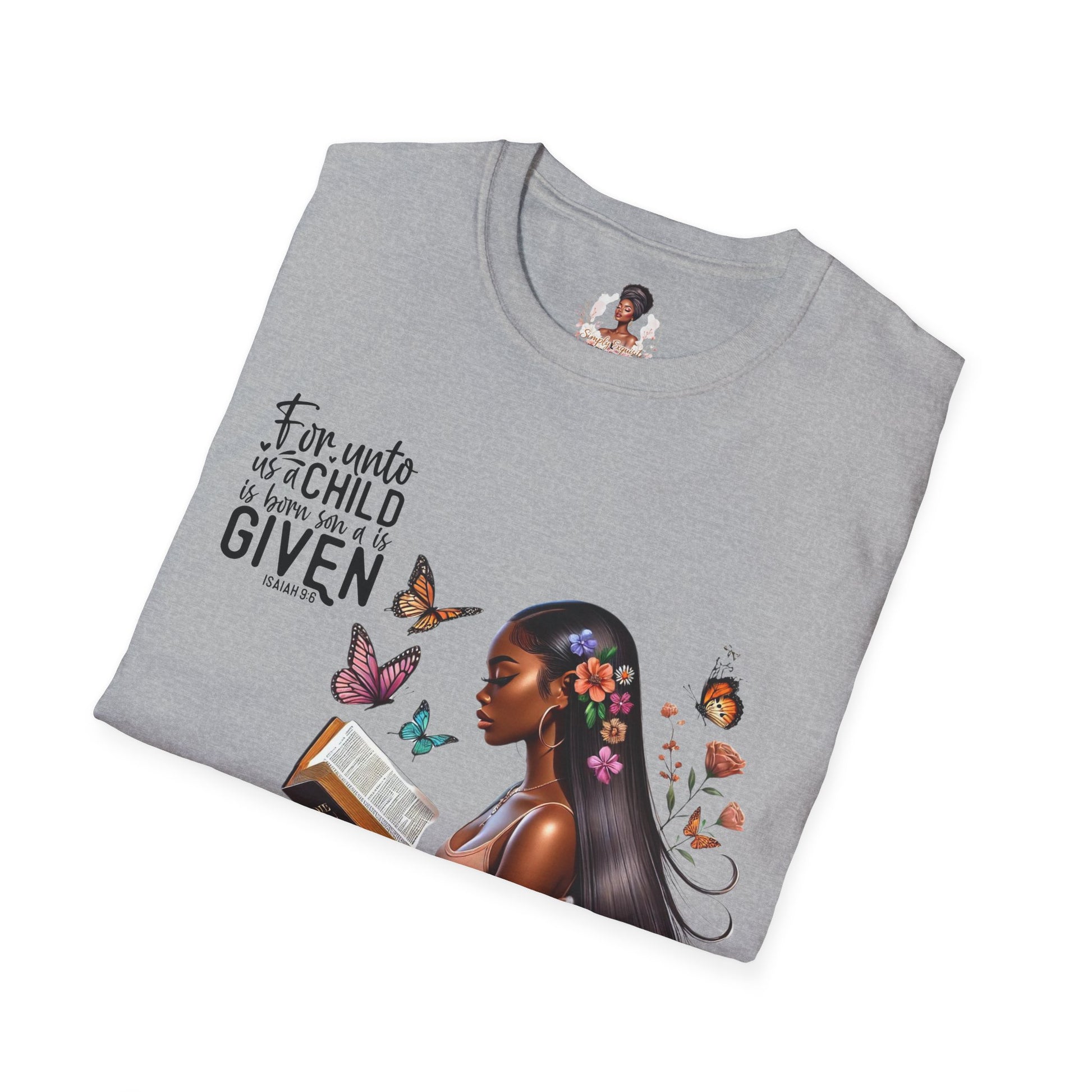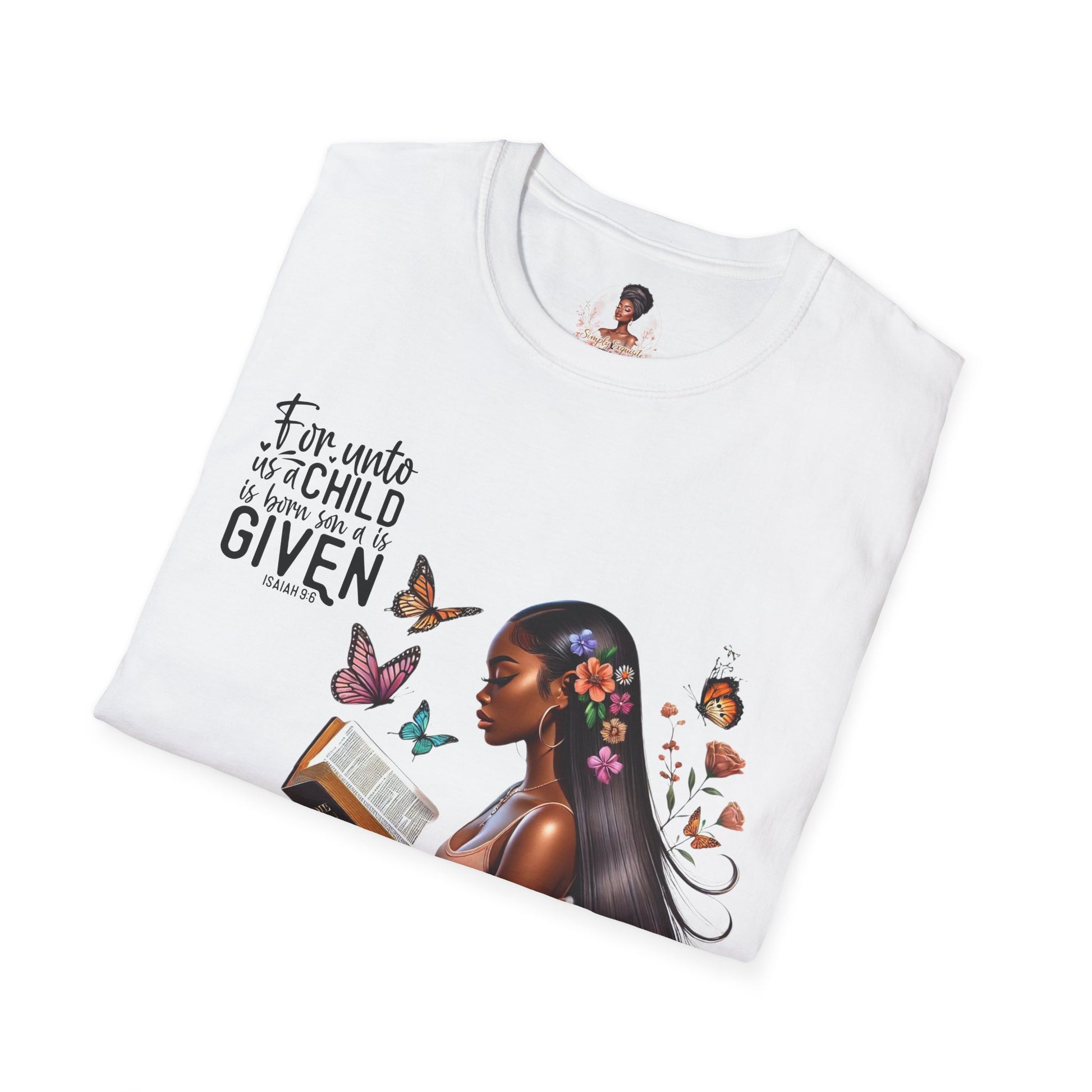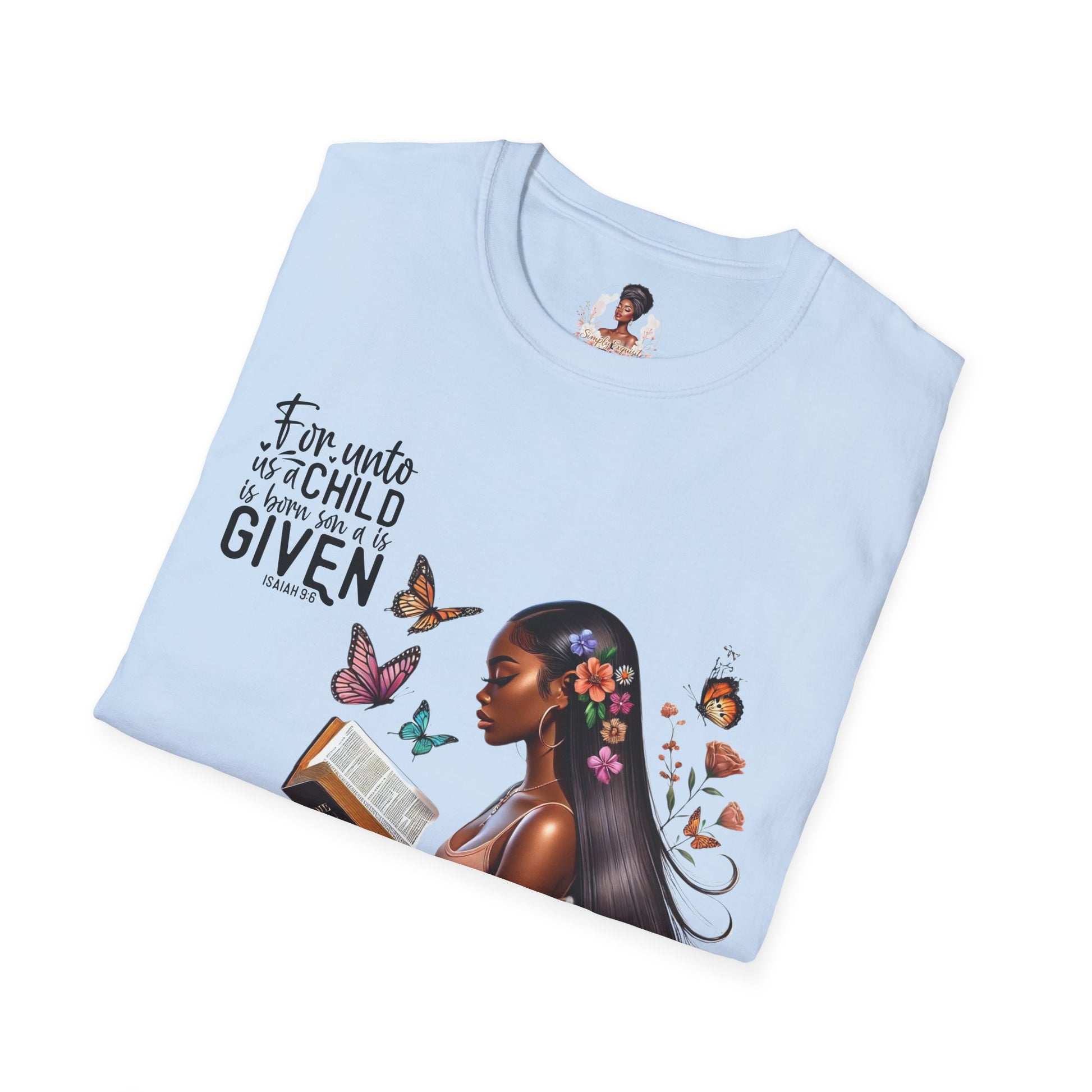 This Isaiah 9:6 design T-shirt exudes a sense of faith and spirituality. It is perfect for those who seek comfort and inspiration in their daily lives. Ideal for Christians celebrating Christmas or Easter, this unisex softstyle T-shirt is a versatile addition to any wardrobe.
