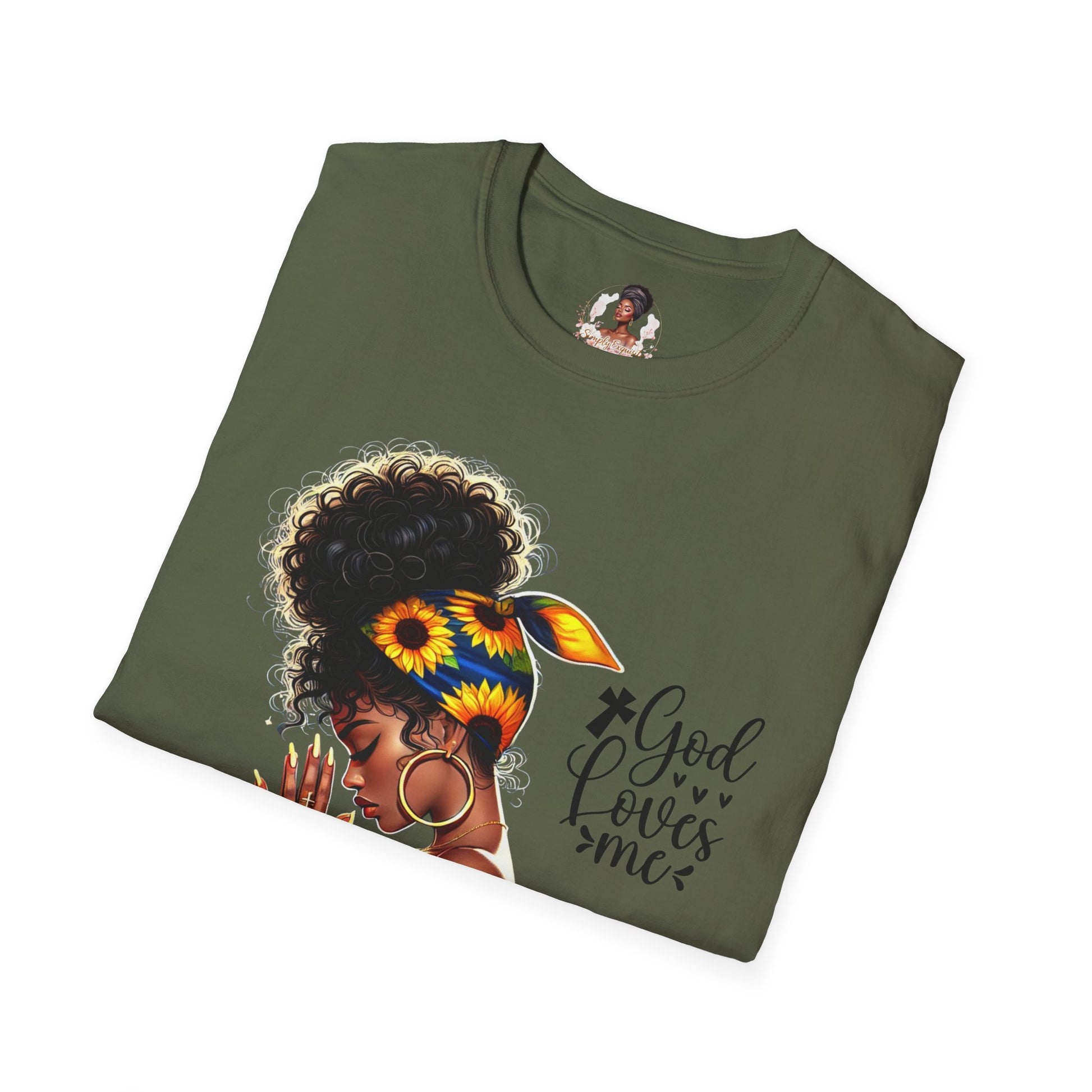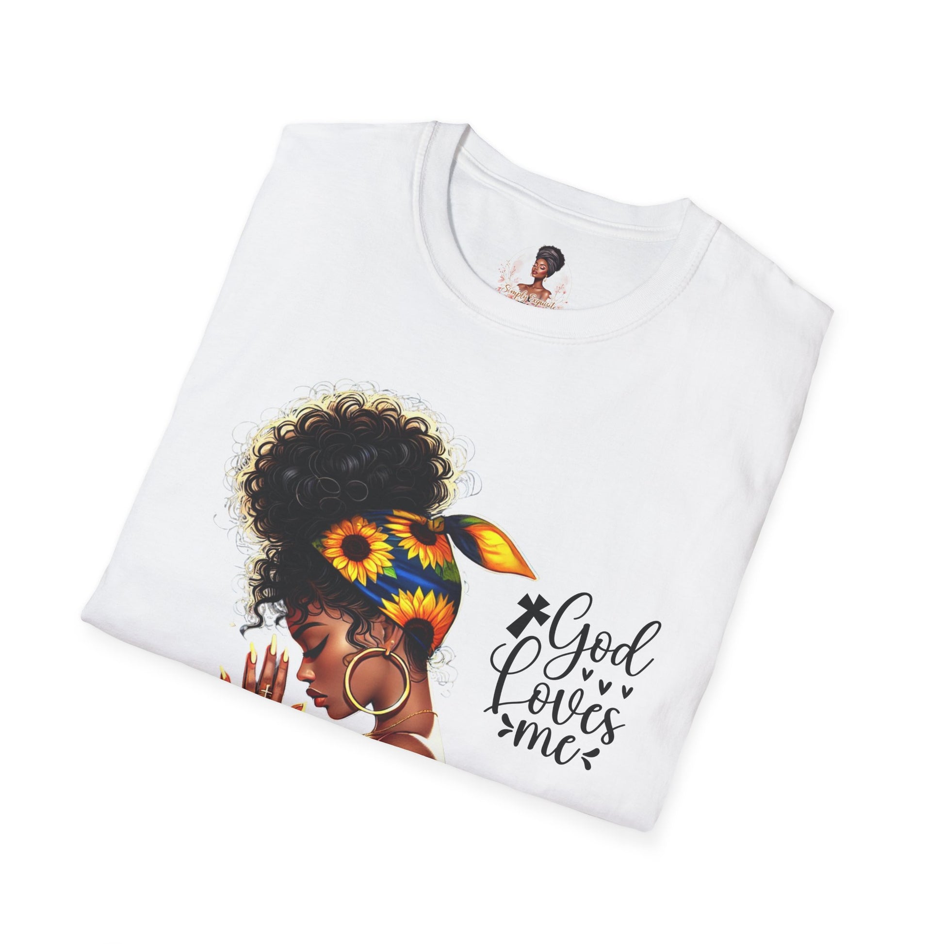 God Loves Me Sunflower Unisex T-Shirt, Inspirational Tee, Adjustable Fit, Everyday Wear, Gift for Her